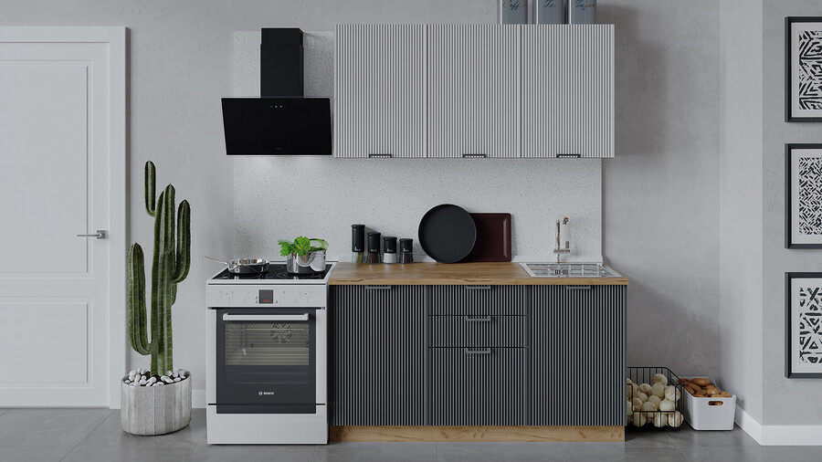 Габаритный размер готового набора модулей с учетом газовой плиты на 60 см: 210 см.