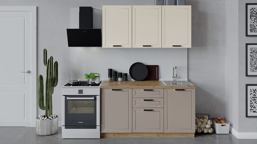 Кухонный гарнитур «Лорас» длиной 150 см Дуб Крафт золотой, Холст брюле, Холст латте