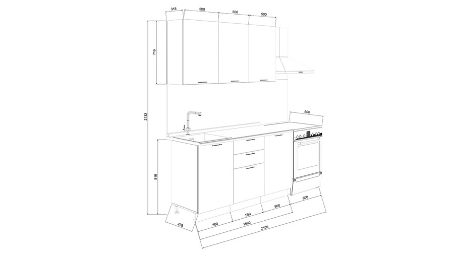 Габаритный размер набора модулей без учета газовой плиты 1 500