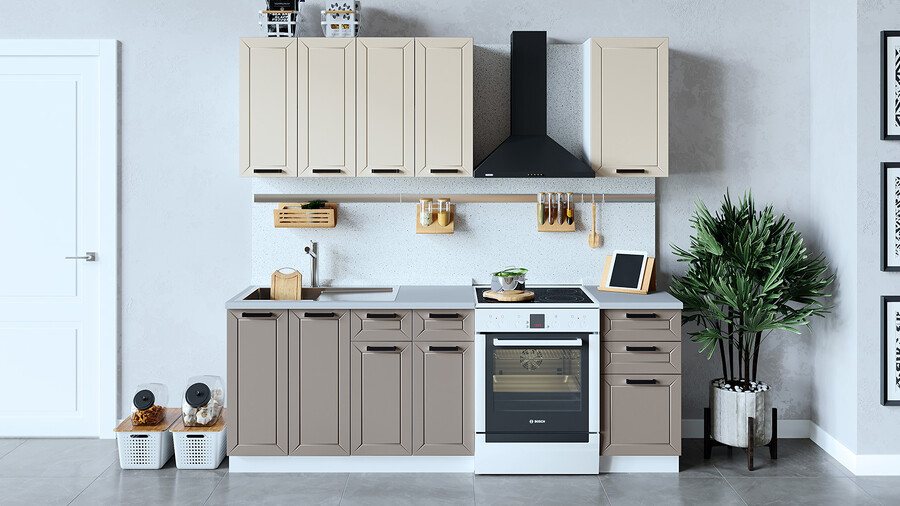 Кухонный гарнитур «Лорас» длиной 160 см Белый, Холст брюле, Холст латте