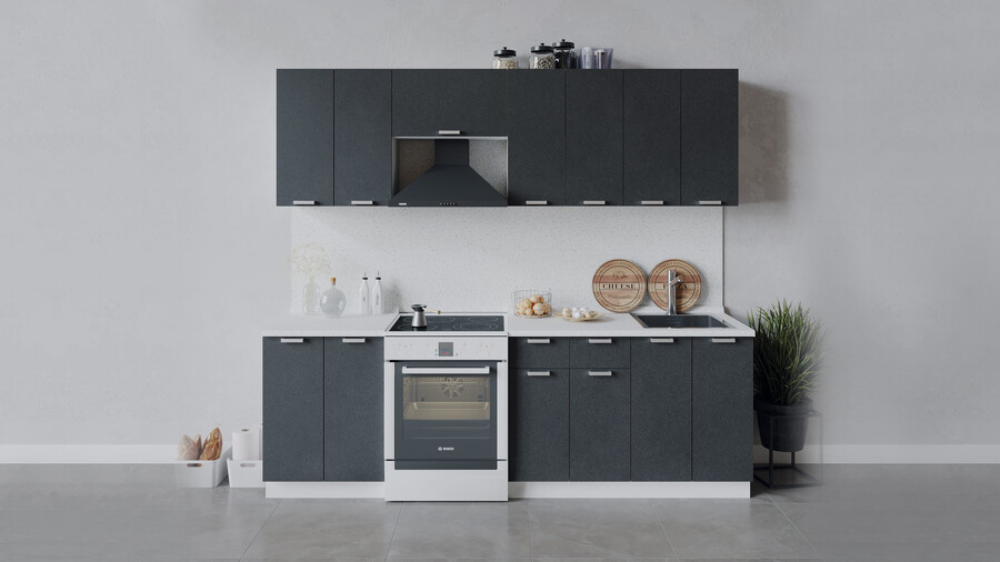 Кухонный гарнитур «Гранита» длиной 240 см Белый, Бетон графит