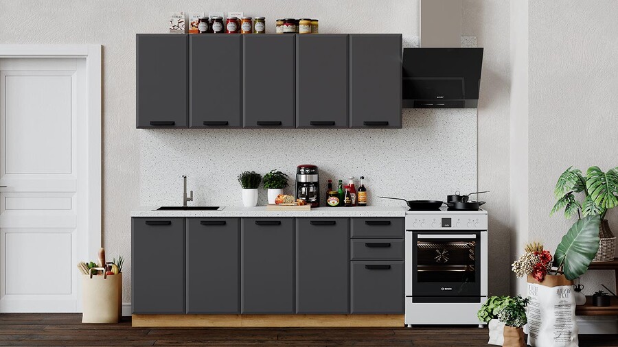 Габаритный размер набора модулей без учета газовой плиты: 200 см.