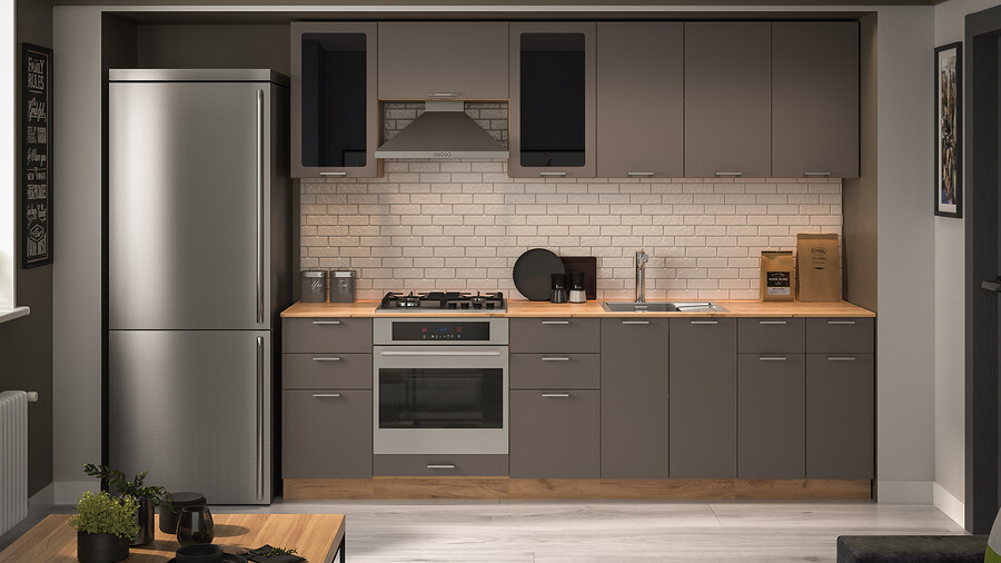 Габаритный размер готового набора модулей с учетом газовой плиты на 60 см: 260 см.