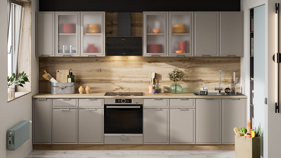 В стоимость не включено: Стеновая панель, столешница, доводчики, бытовая техника, мойка, смеситель, аксессуары