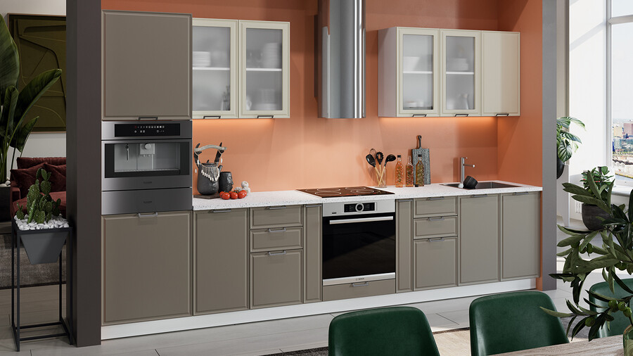 В стоимость не включено: Стеновая панель, столешница, доводчики, бытовая техника, мойка, смеситель, аксессуары