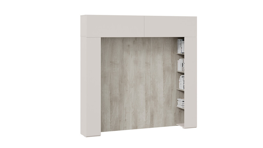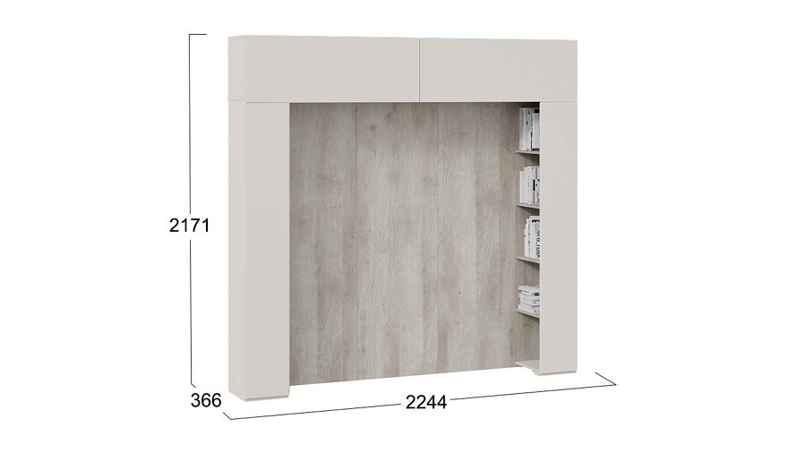 Шкаф навесной (366) со стеллажами и декоративными панелями «Порто» - СМ-393.21.022-23-01 Кашемир матовый, Баттл Рок, Кашемир сатин