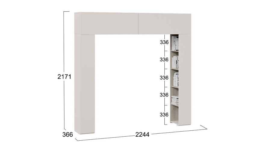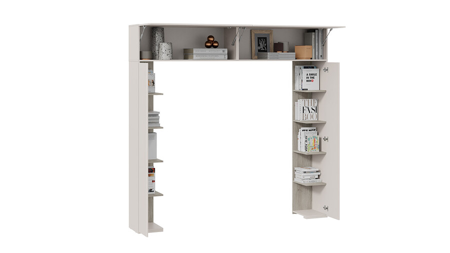 Шкаф навесной (366) со стеллажами «Порто» - СМ-393.21.022 Кашемир матовый, Баттл Рок, Кашемир сатин