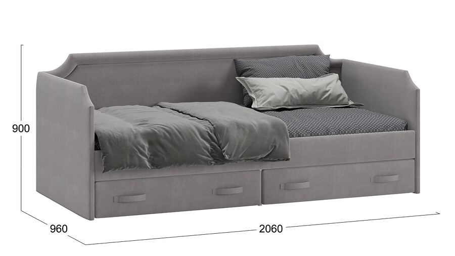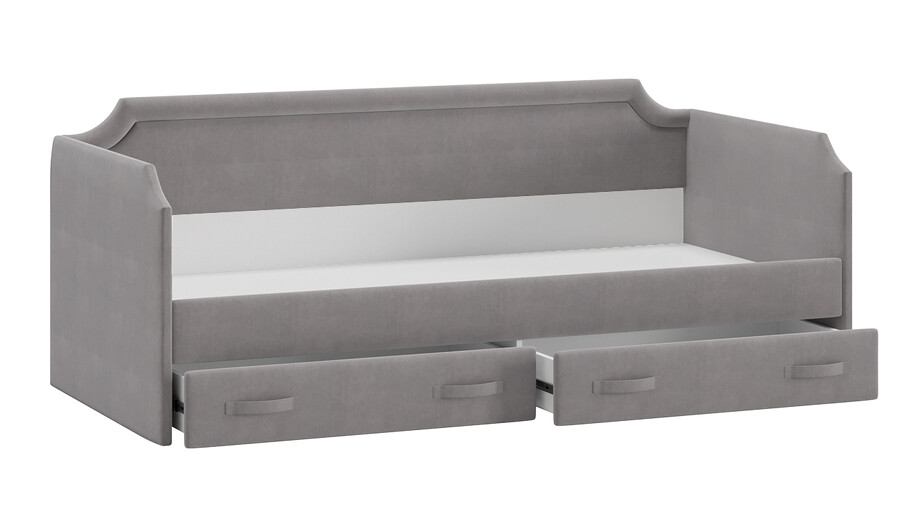 Кровать с мягкой обивкой и ящиками «Кантри» Тип 1 (900) - ТД-308.12.02 Велюр Светло-серый