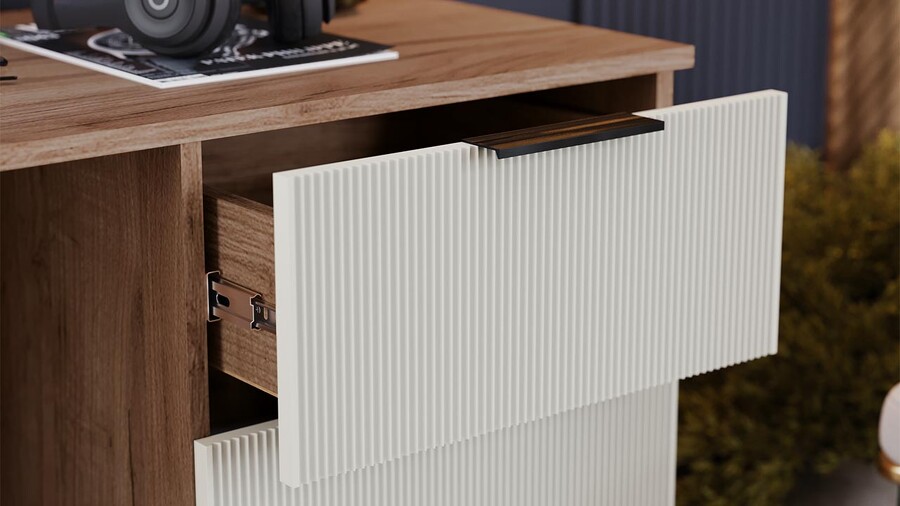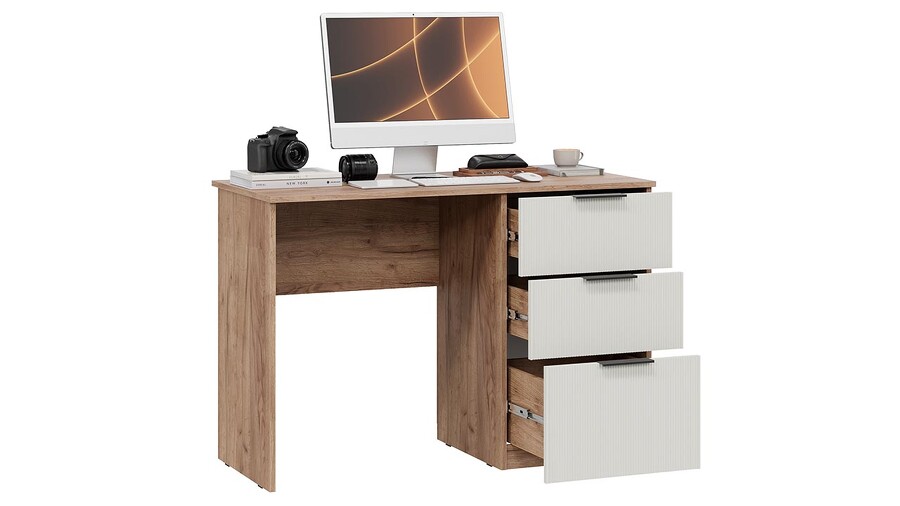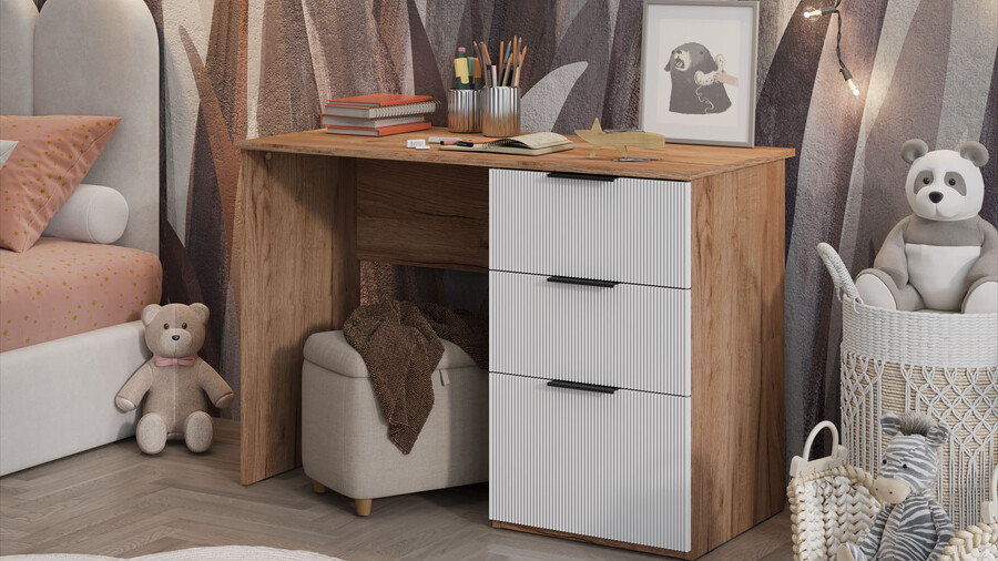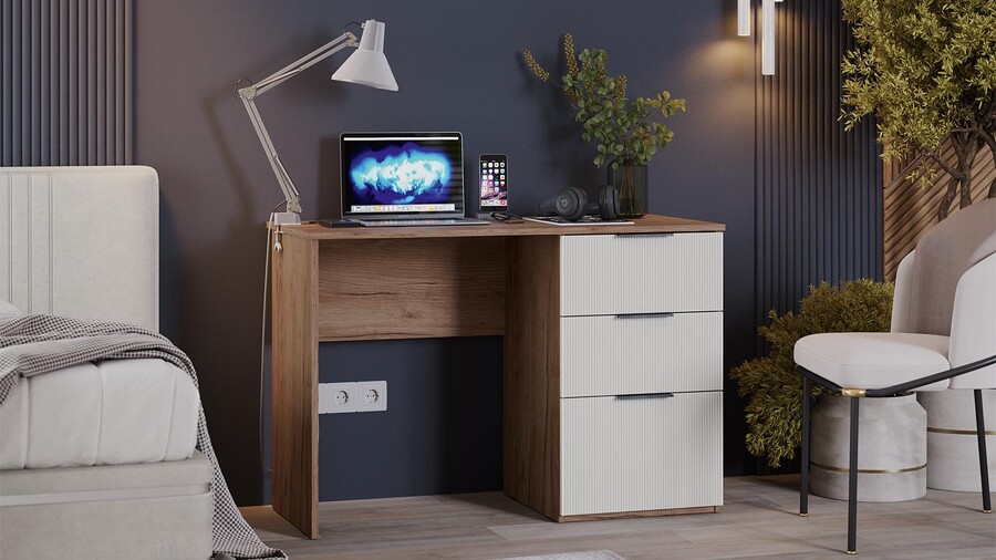 Стол письменный «Графит» Дуб Крафт Табачный, Холст Белый