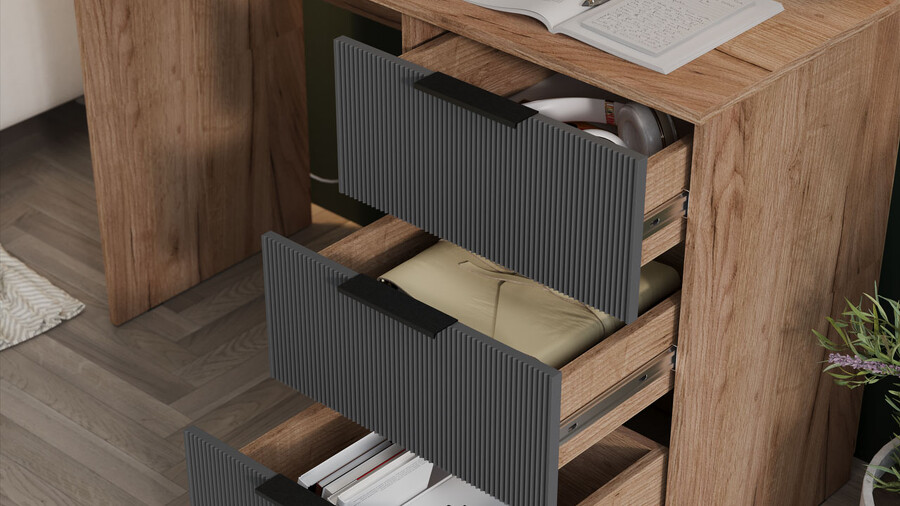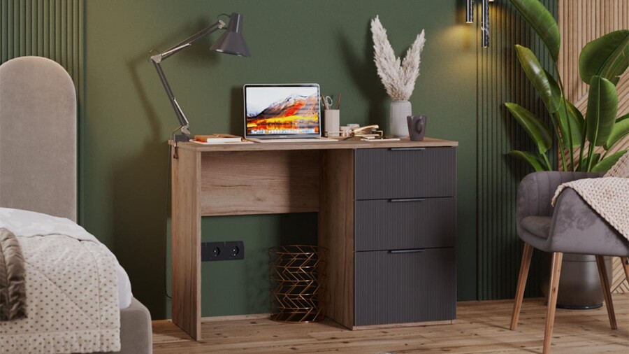 Стол письменный «Графит» Дуб Крафт Табачный, Холст Вулкан