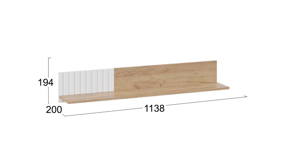 Полка настенная «Хилтон» Исп.2 - 413.22 Дуб Крафт золотой, Белый матовый