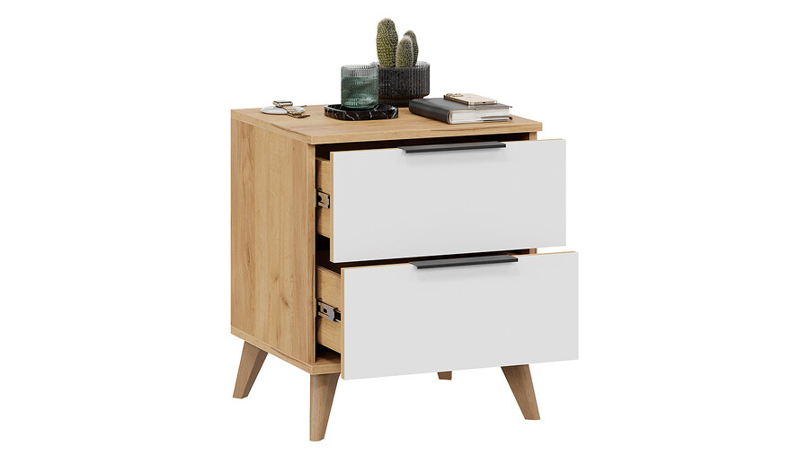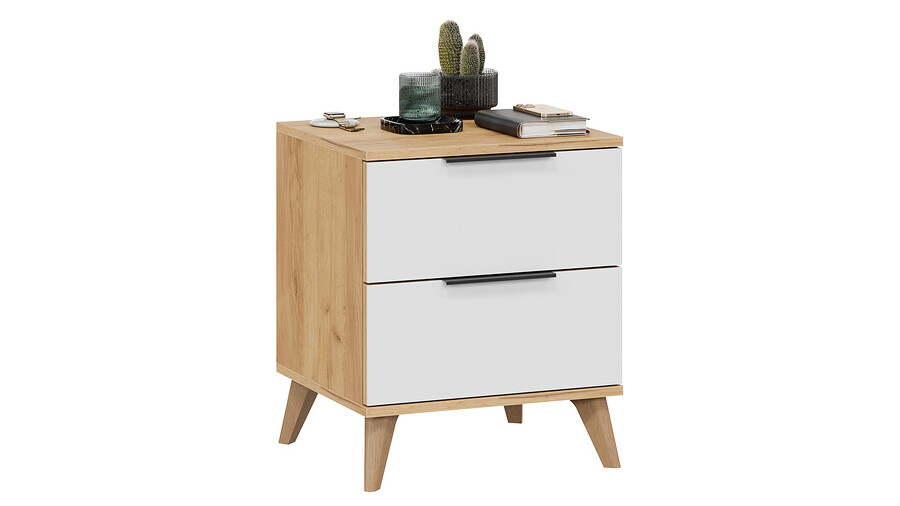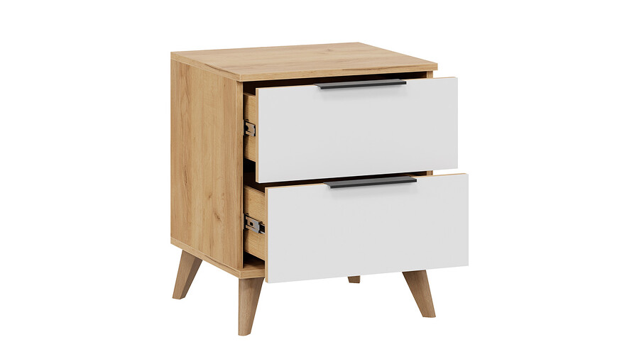 Тумба прикроватная «Джоли» с опорами Бук матовый, Дуб Крафт золотой, Белый матовый