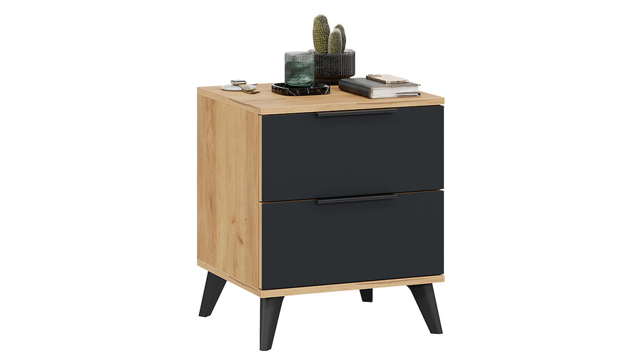 Тумба прикроватная «Джоли» с опорами Черный матовый, Дуб Крафт золотой, Графит матовый