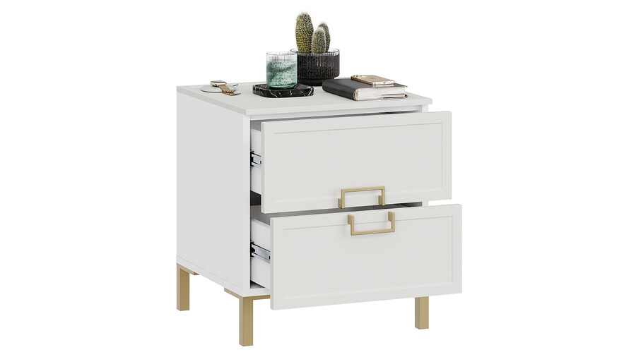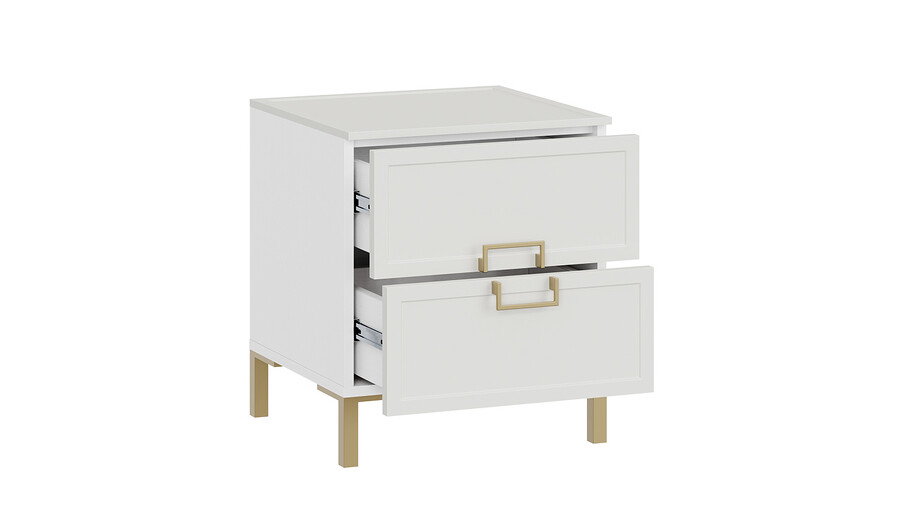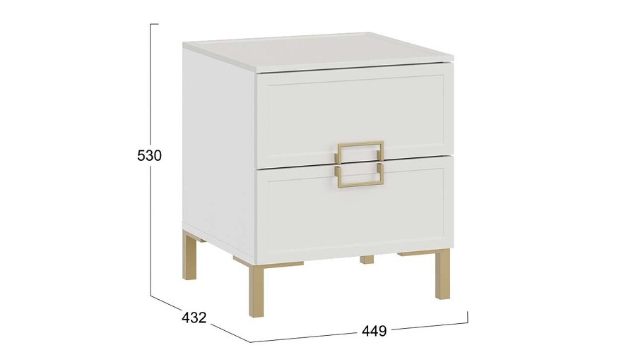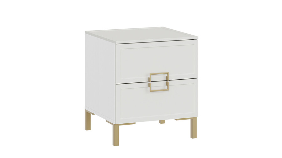 Тумба прикроватная «Стелла» с опорами Золото розовое, Белый холст, Белый Жемчуг