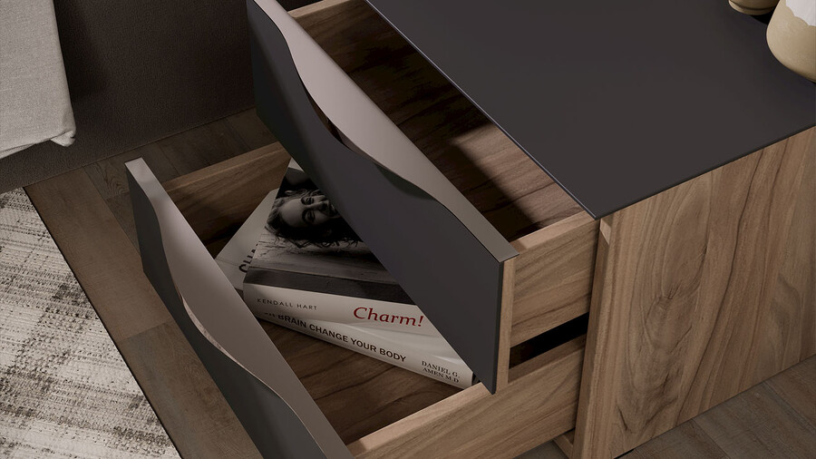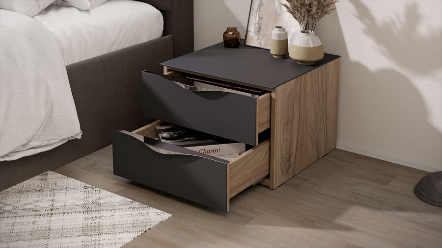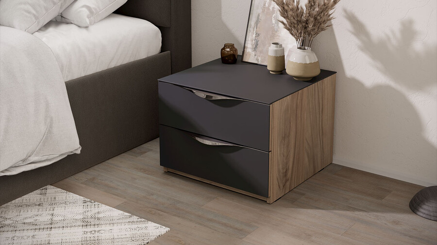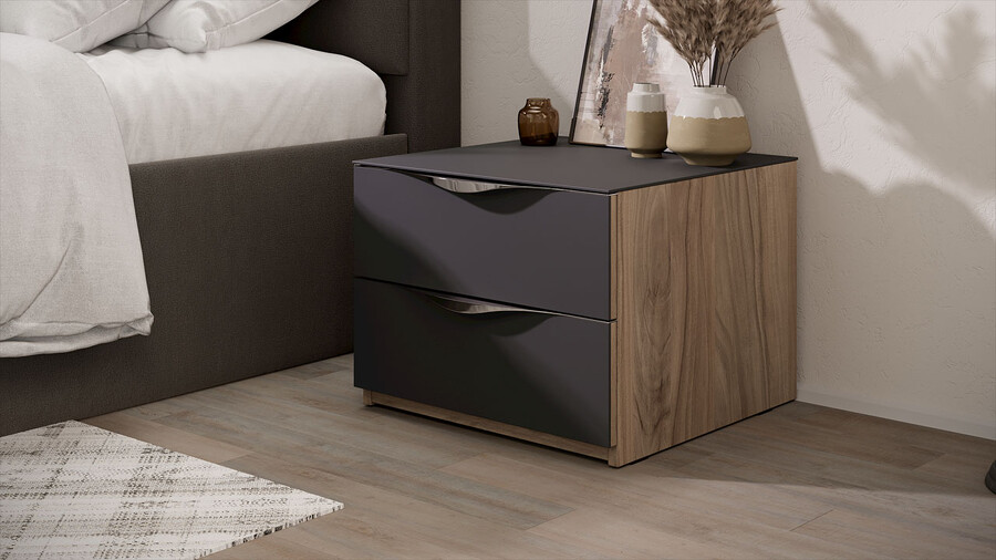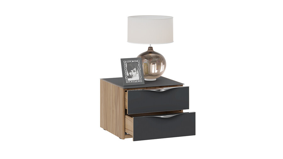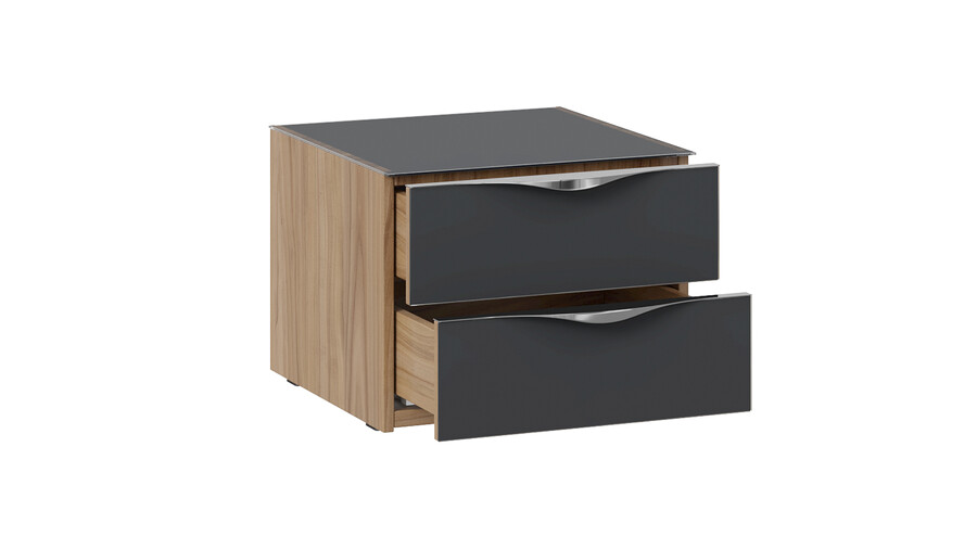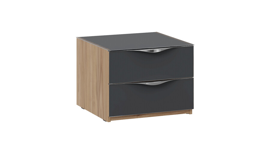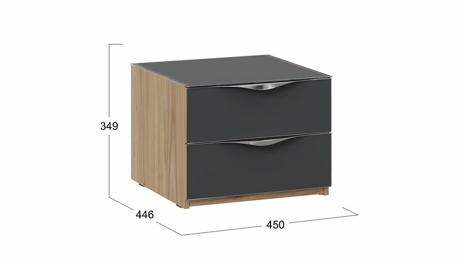 Тумба прикроватная с 2 ящиками «Глосс» - ТД 319.03.01 Яблоня Беллуно, Стекло Графит матовый
