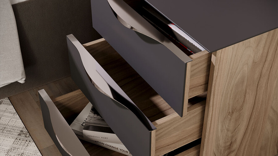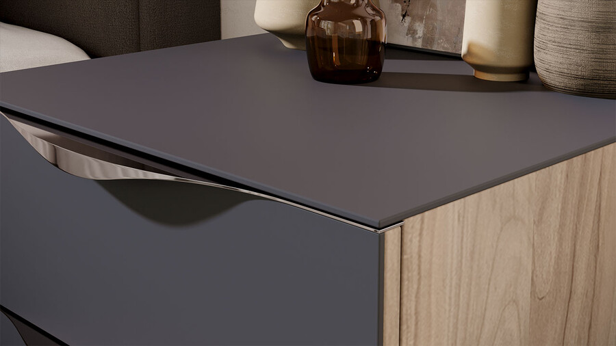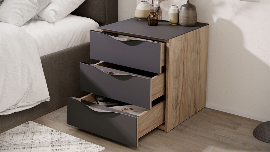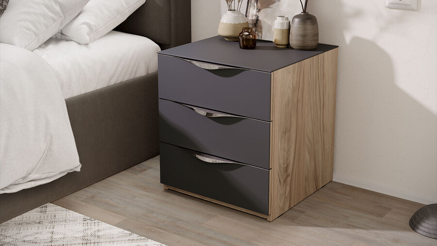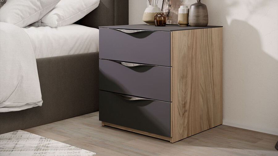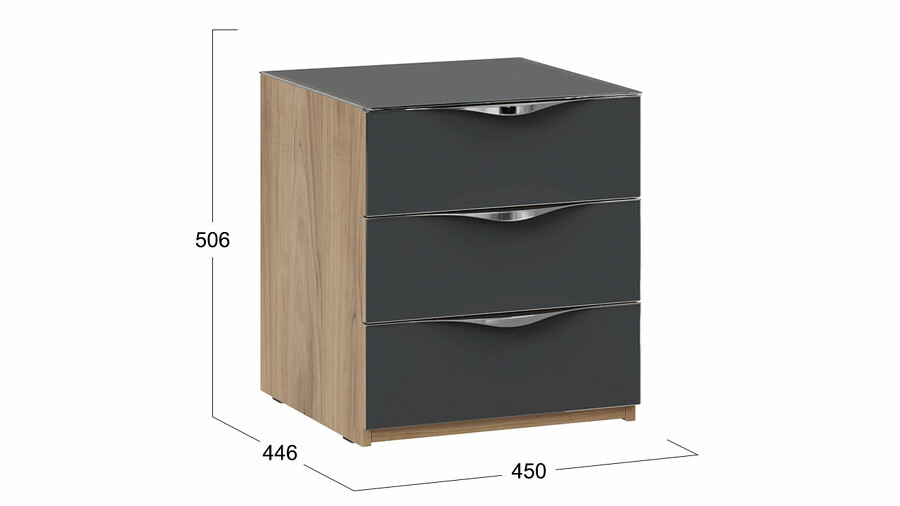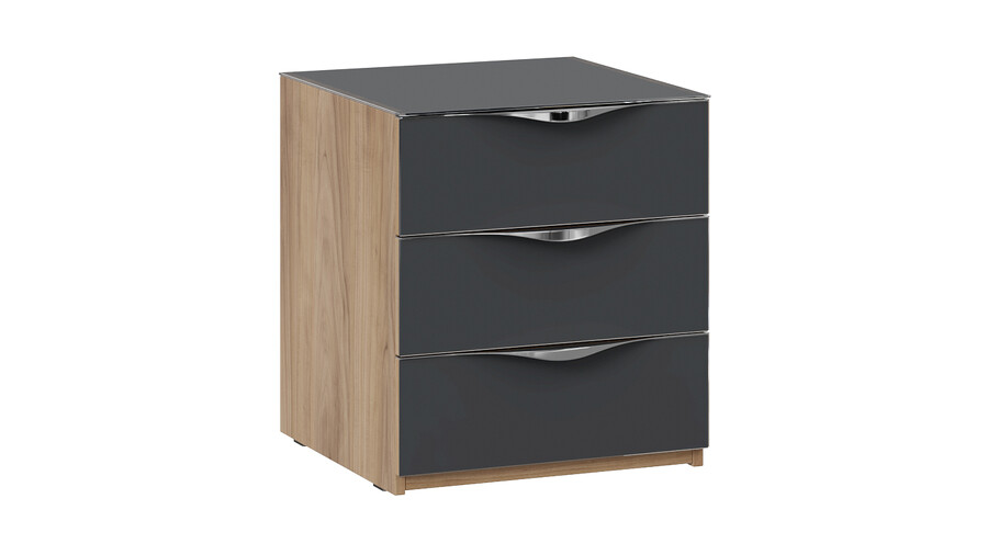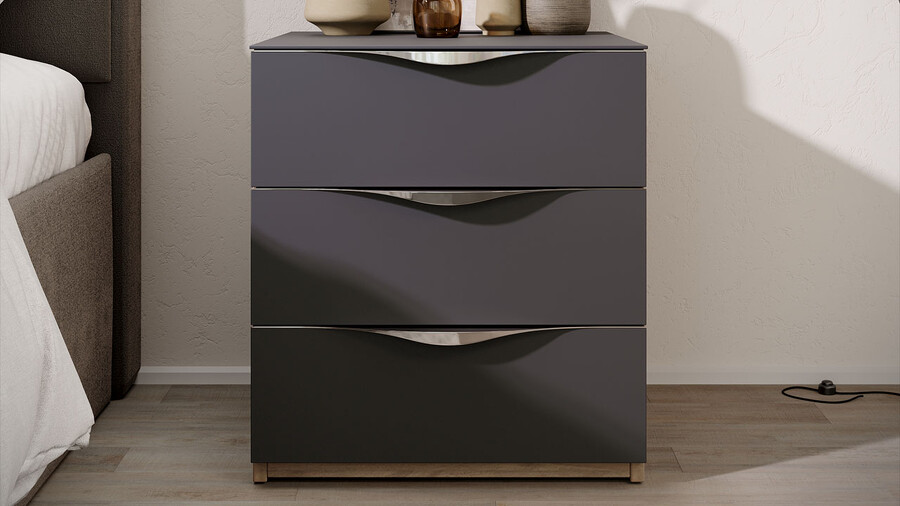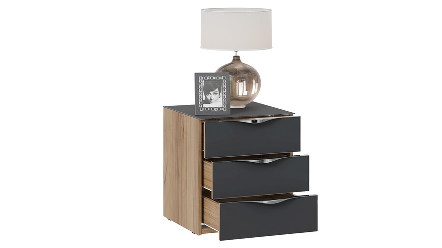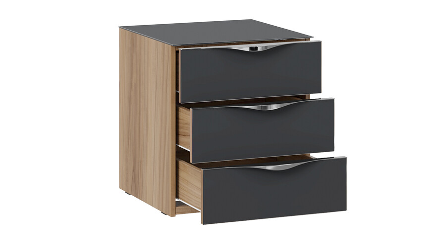 Тумба прикроватная с 3 ящиками «Глосс» - ТД 319.03.02 Яблоня Беллуно, Стекло Графит матовый