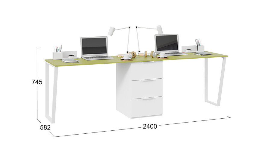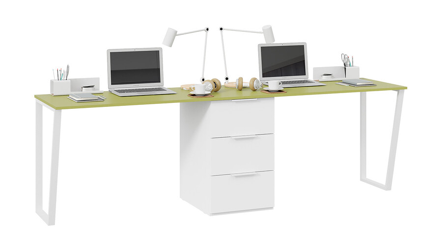 Комплект столов письменных с 1 тумбой универсальной «Порто» - СМ-393.15.013 Белый, Зеленый