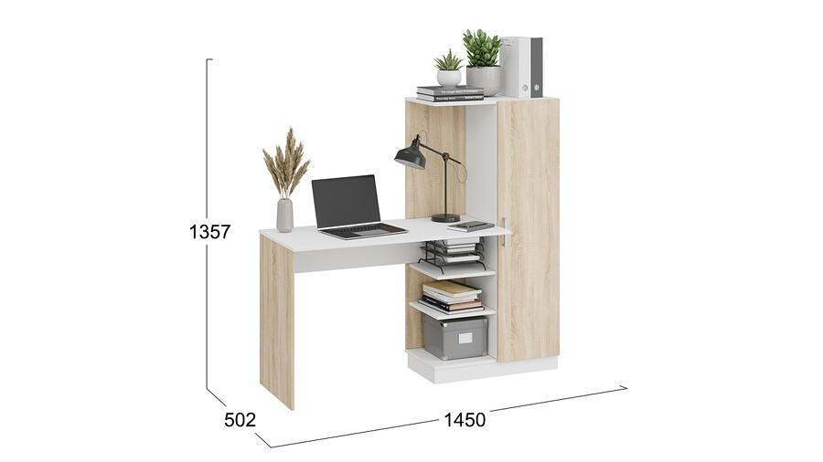 Стол компьютерный «Бейсик» Дуб Сонома, Белый