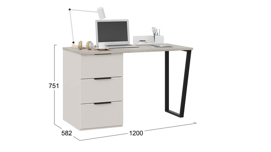 Стол письменный с тумбой универсальной «Порто» - СМ-393.15.011 Кашемир матовый, Баттл Рок, Кашемир сатин