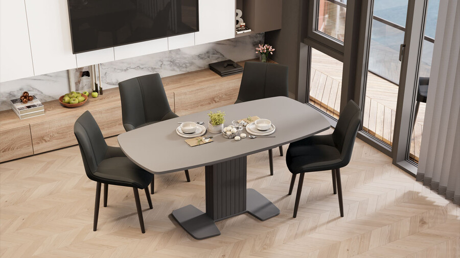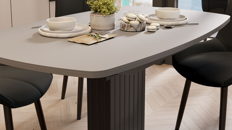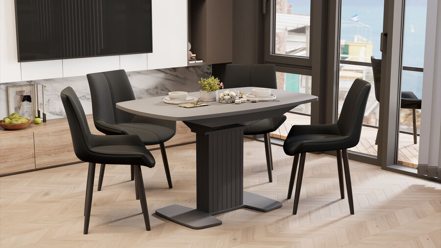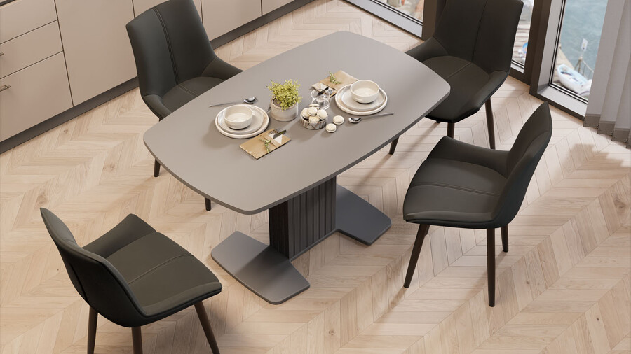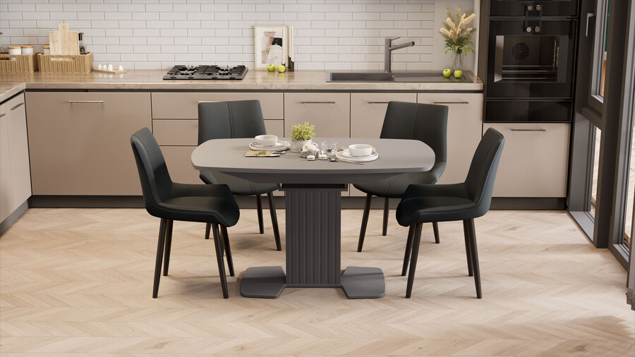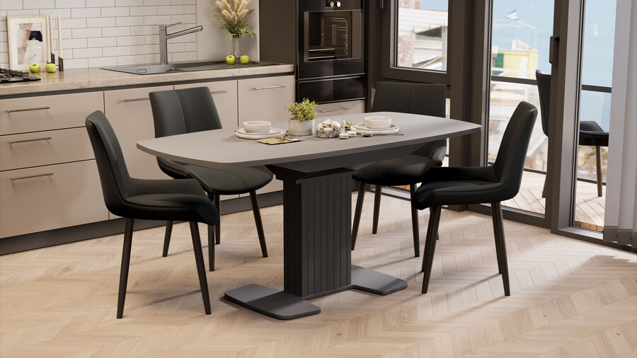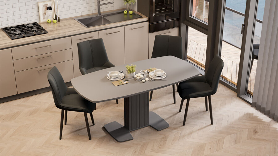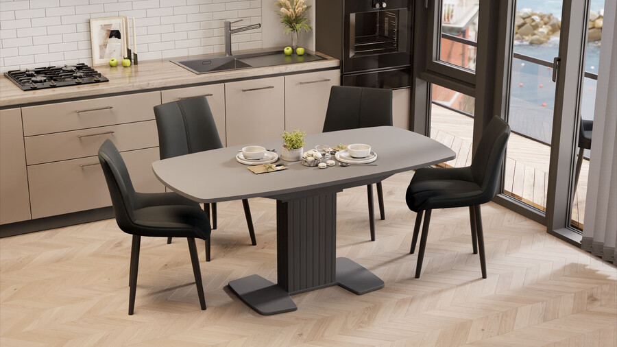 Стол обеденный раздвижной «Хилтон» Тип 2 Графит матовый, Стекло матовое серое