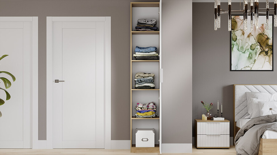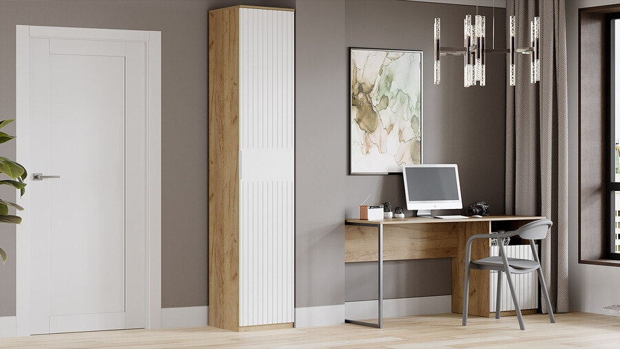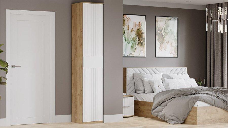 Шкаф для белья «Хилтон» Исп. 2 - 303.002.000 Дуб Крафт золотой, Белый матовый