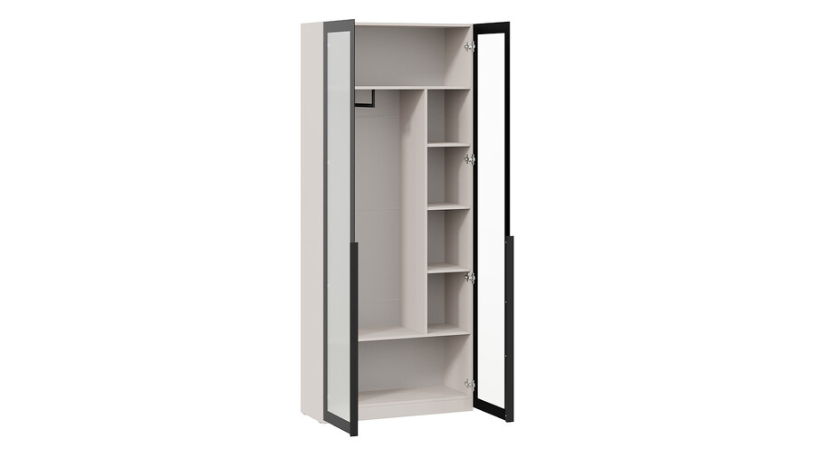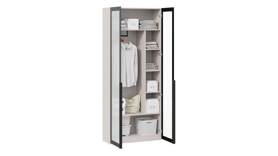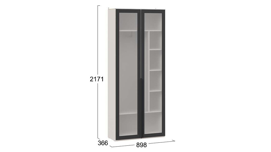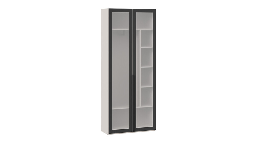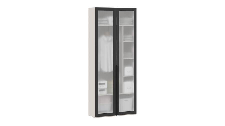 Шкаф для одежды (366) с 2 дверями со стеклом «Порто» - СМ-393.07.226 Кашемир матовый, Графит, Стекло сатин черное