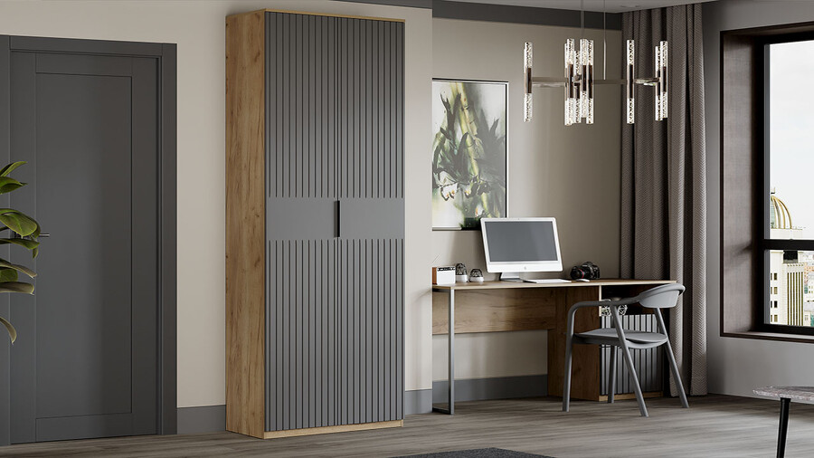 Шкаф комбинированный с 2 дверями «Хилтон» Исп.2 - 404.002.000 Дуб Крафт золотой, Графит матовый
