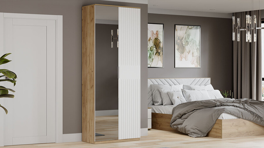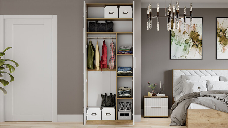 Шкаф комбинированный с 2 дверями «Хилтон» Исп.2.1 - 404.003.000 Дуб Крафт золотой, Белый матовый