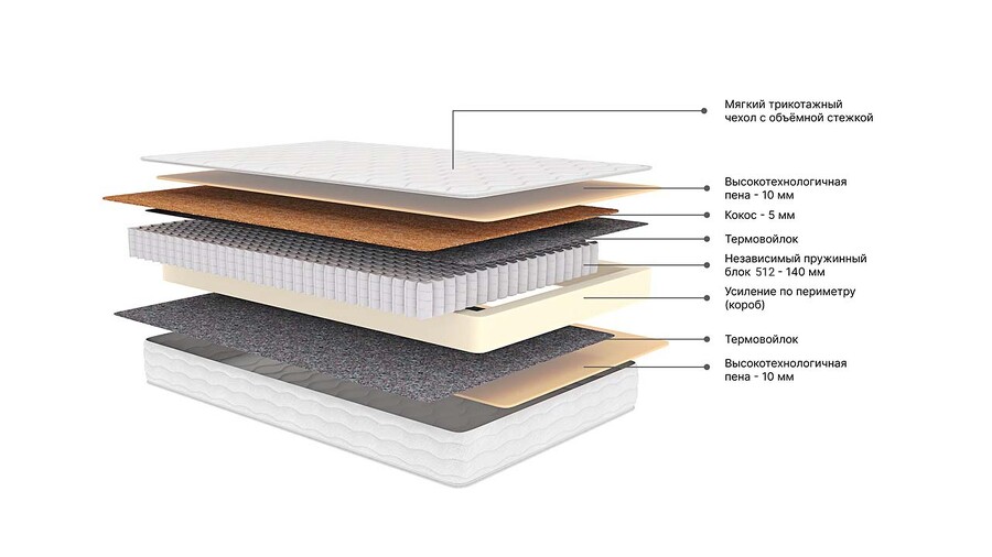 ППУ, независимый пружинный блок, термовойлок, кокос, высокоэластичная пена