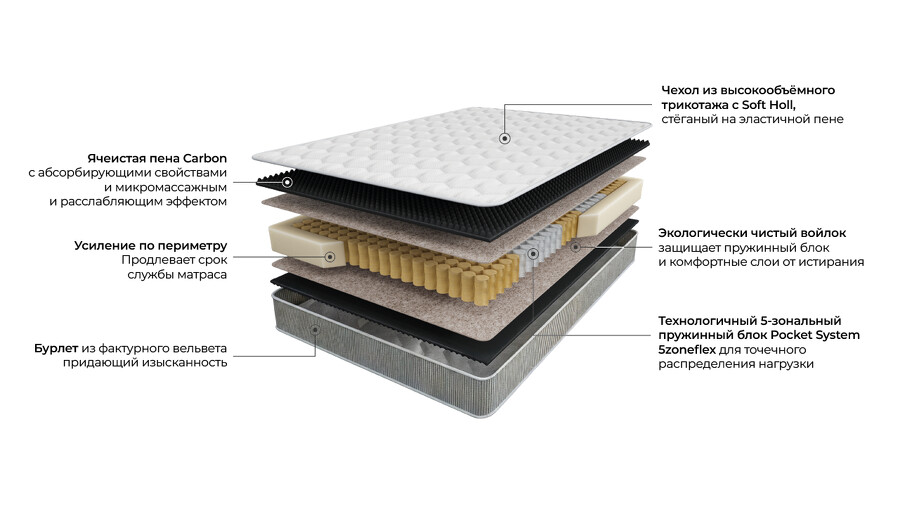 Ячеистая пена Carbon, Войлок, Пружинный блок, ППУ короб