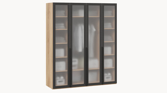 Шкаф для одежды с 2 глухими и 2 стеклянными дверями
