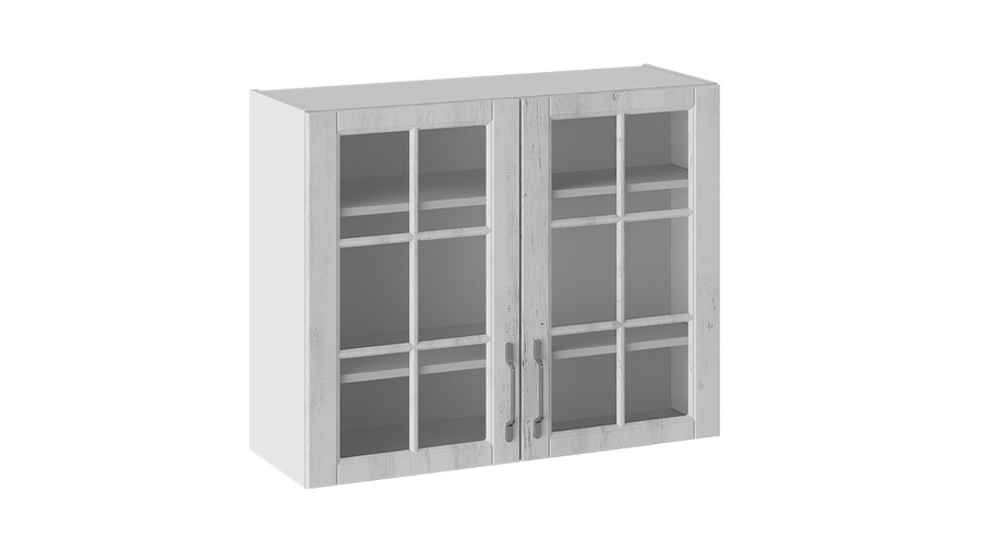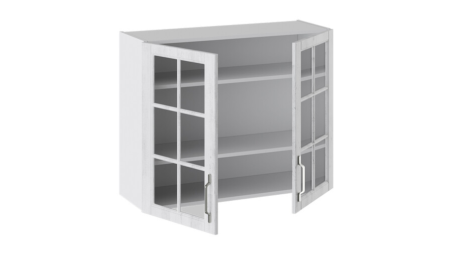 Шкаф навесной со стеклом «Прованс» - В_72-90_2ДРс ПРОВАНС (Белый глянец/Санторини светлый)