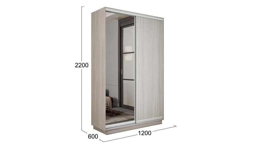 Шкаф-купе 2-х дверный «Румер-2» - СШК 3.120.60-11.13 Ясень шимо светлый, Зеркало
