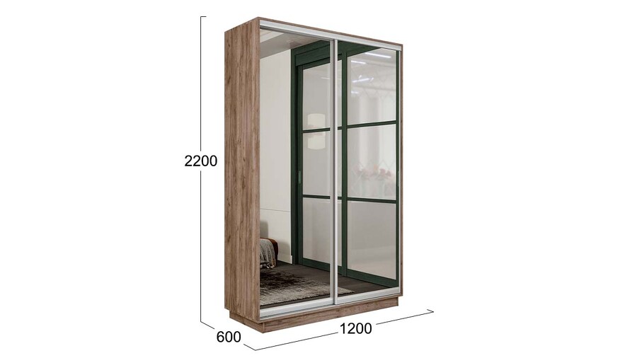 Шкаф-купе 2-х дверный «Румер-2» - СШК 3.120.60-13.13 Дуб Крафт Табачный, Зеркало