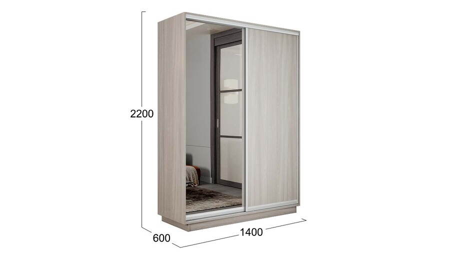 Шкаф-купе 2-х дверный «Румер-2» - СШК 3.140.70-11.13 Ясень шимо светлый, Зеркало