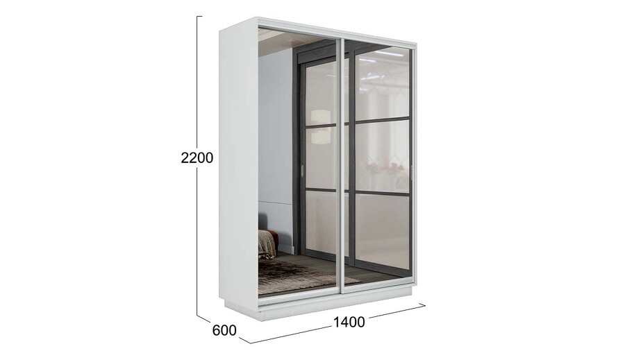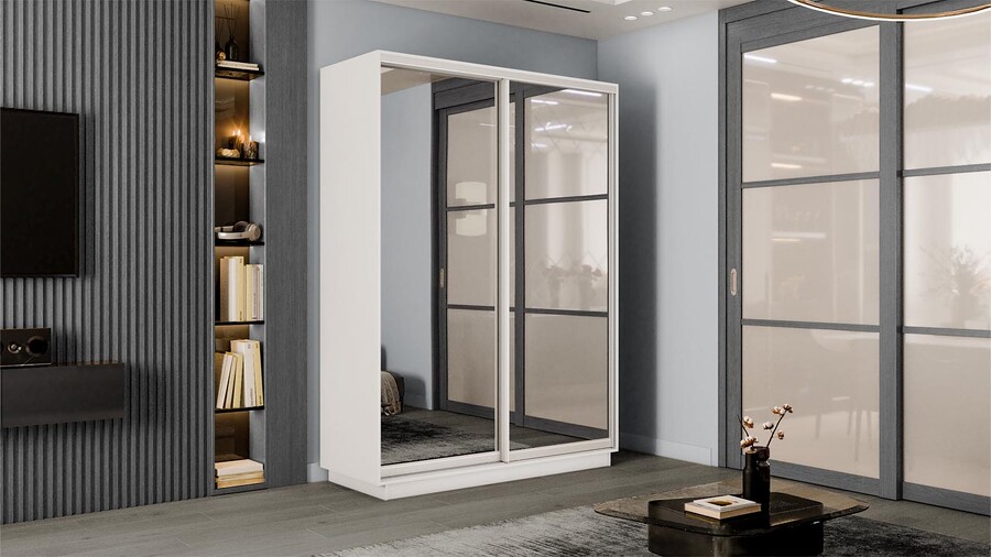 Шкаф-купе 2-х дверный «Румер-2» - СШК 3.140.70-13.13 Белый снег, Зеркало