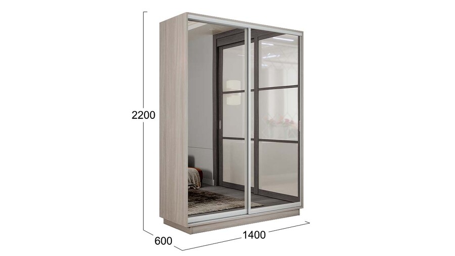 Шкаф-купе 2-х дверный «Румер-2» - СШК 3.140.70-13.13 Ясень шимо светлый, Зеркало