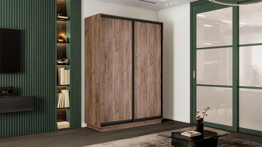 Шкаф-купе 2-х дверный «Румер-2» - СШК 3.120.60-11.11(Н) Дуб Крафт Табачный, Черный профиль