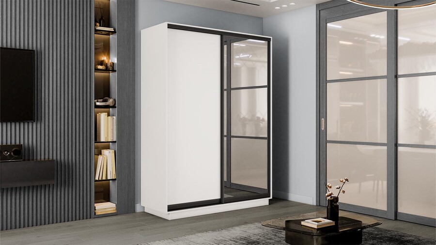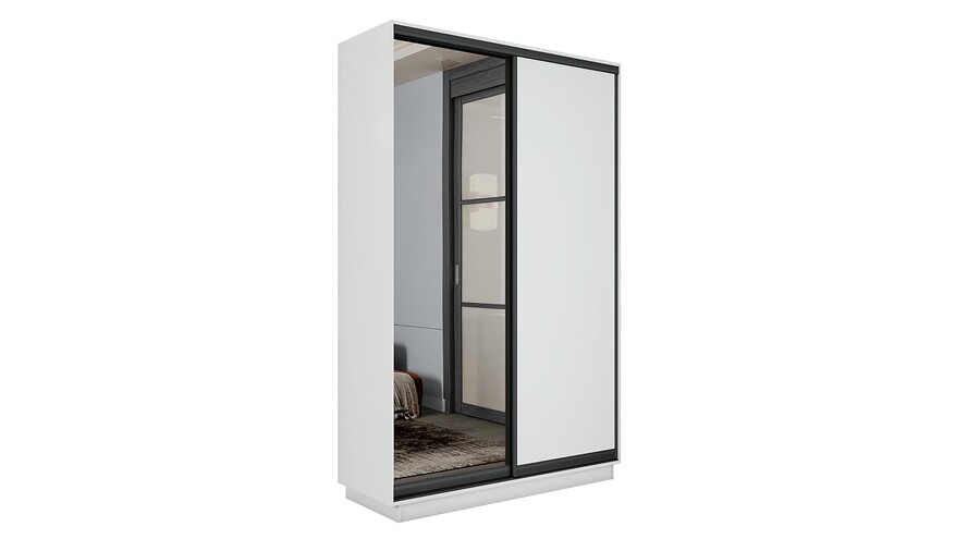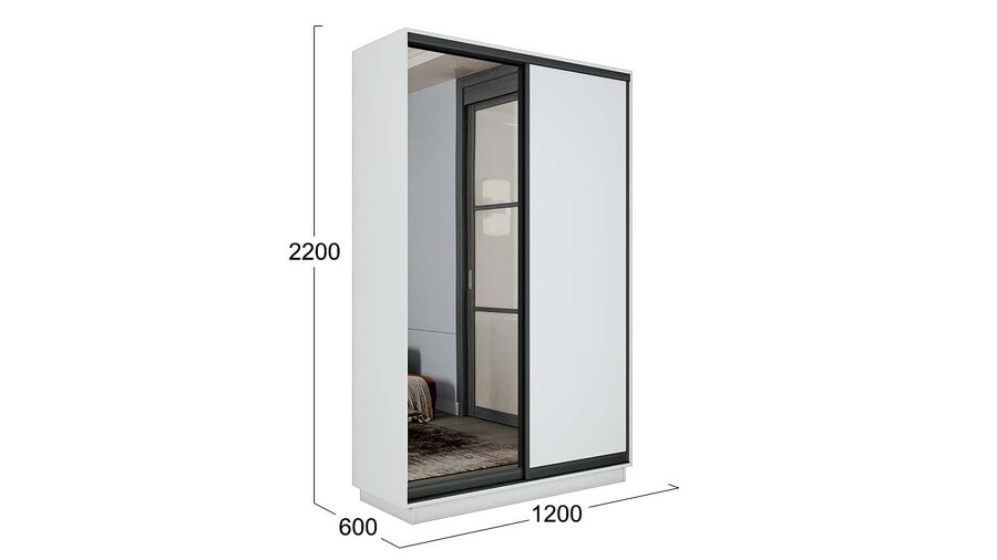 Шкаф-купе 2-х дверный «Румер-2» - СШК 3.120.60-11.13(Н) Белый снег, Зеркало, Черный профиль