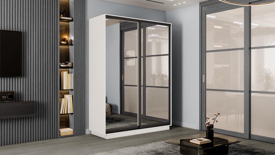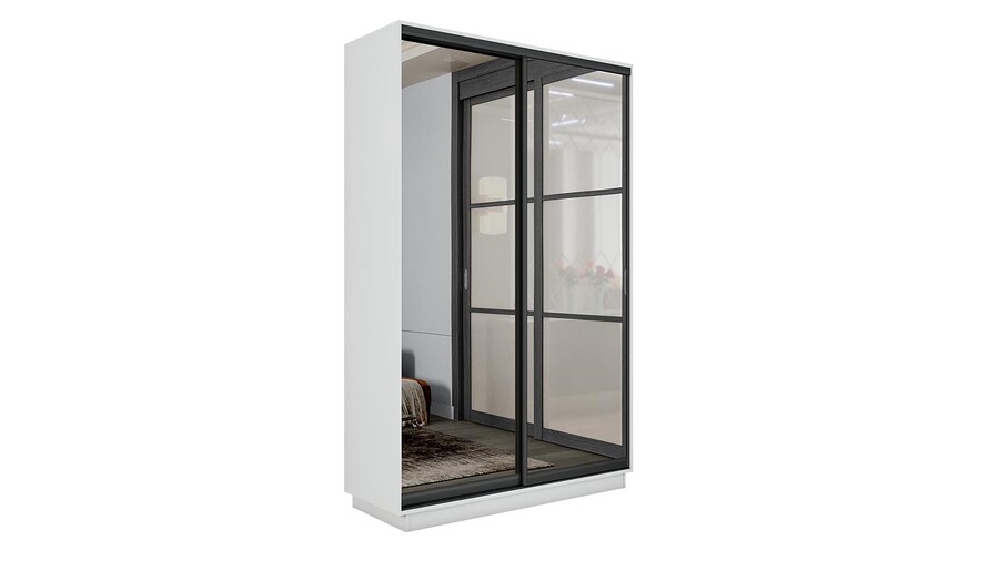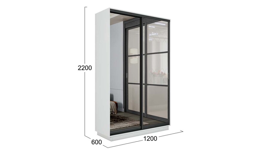 Шкаф-купе 2-х дверный «Румер-2» - СШК 3.120.60-13.13(Н) Белый снег, Зеркало, Черный профиль