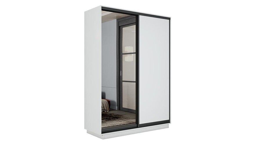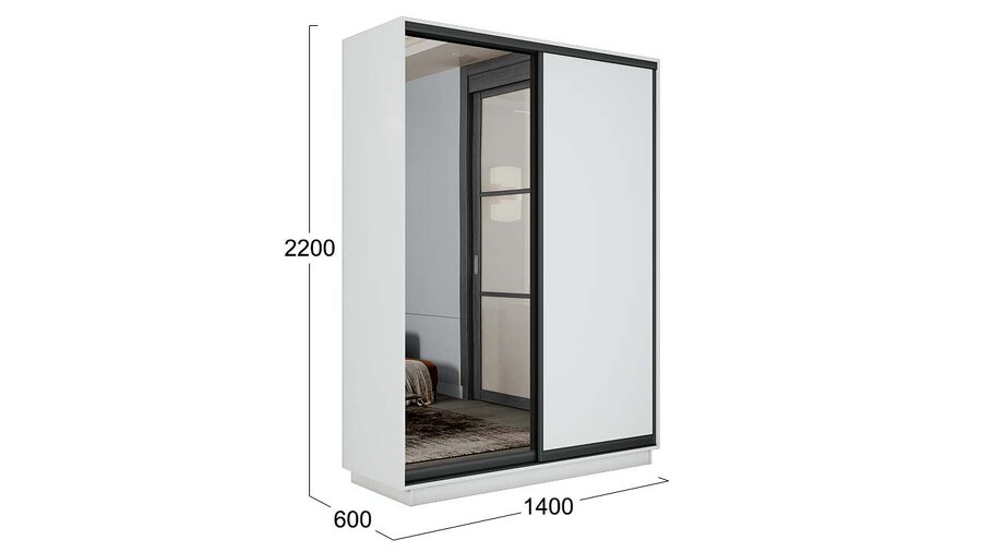 Шкаф-купе 2-х дверный «Румер-2» - СШК 3.140.70-11.13(Н) Белый снег, Зеркало, Черный профиль