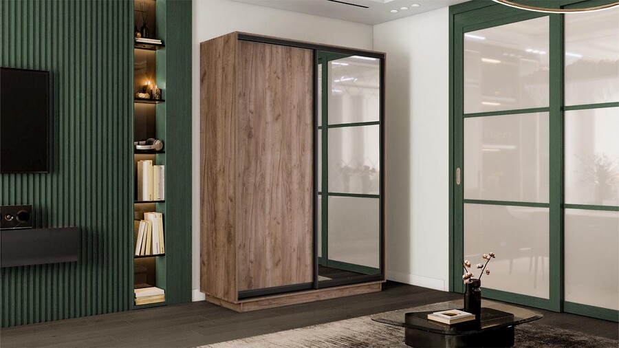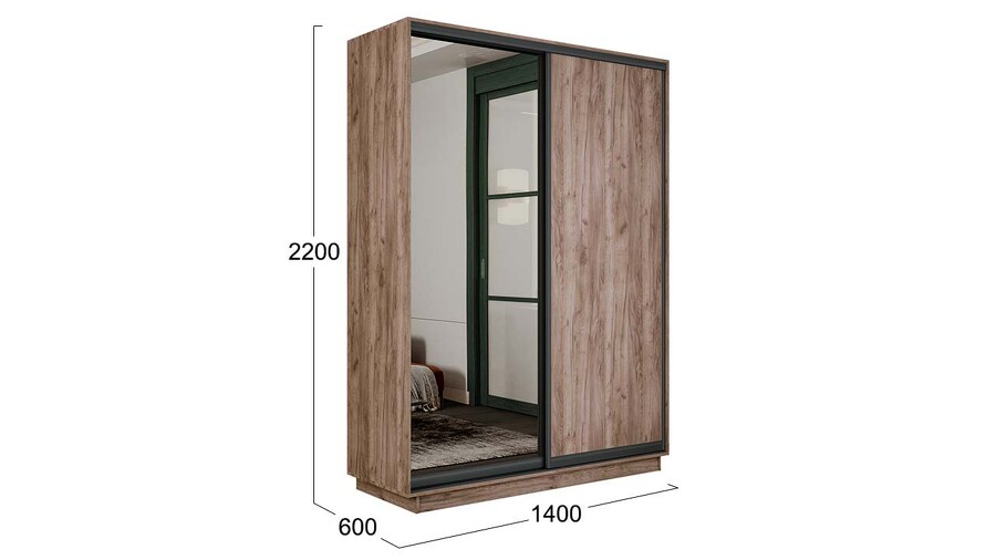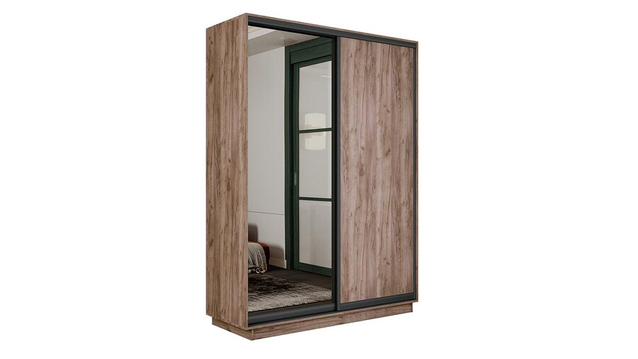 Шкаф-купе 2-х дверный «Румер-2» - СШК 3.140.70-11.13(Н) Дуб Крафт Табачный, Зеркало, Черный профиль