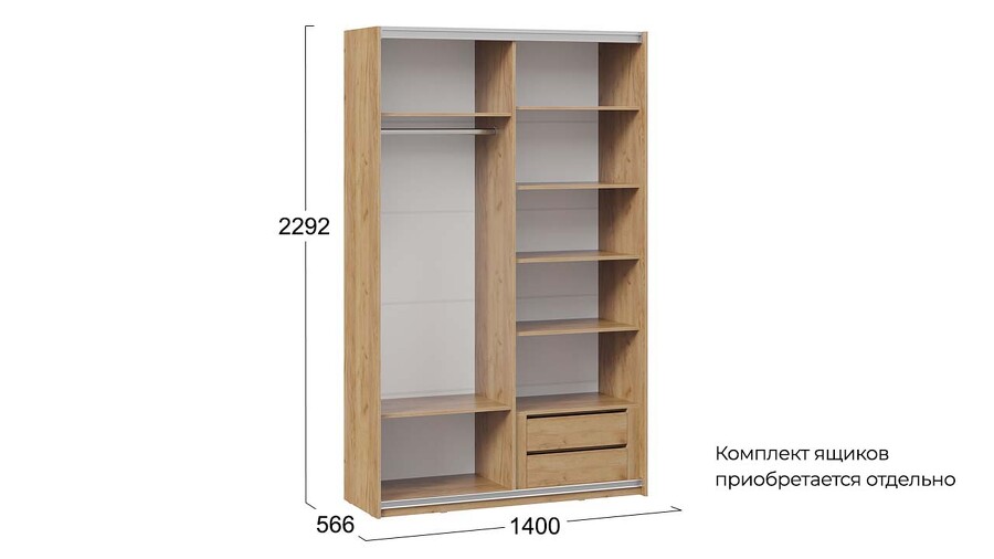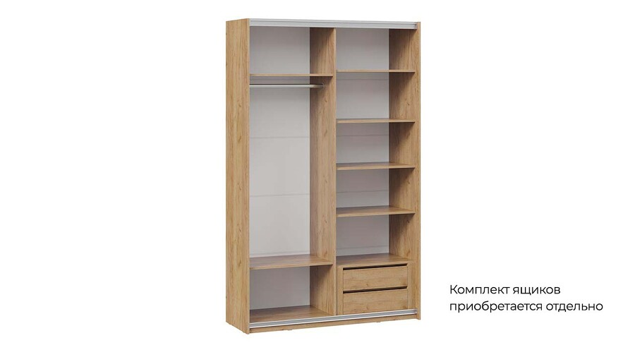 Шкаф-купе с 1 глухой и 1 зеркальной дверями «Оскар Хилтон» Ручка белая, Дуб Крафт золотой, Белый матовый