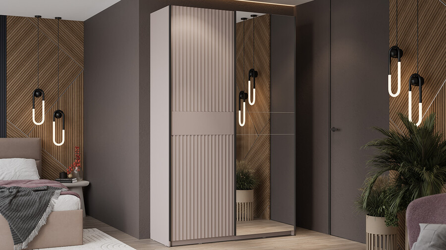 Шкаф-купе с 1 глухой и 1 зеркальной дверями «Оскар Тиффани» Ручка черная, Кашемир, Кашемир матовый