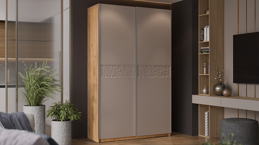Шкаф-купе с 2 глухими дверями «Оскар Скания» Ручка серебро, Дуб Крафт золотой, Кашемир, Кашемир сатин
