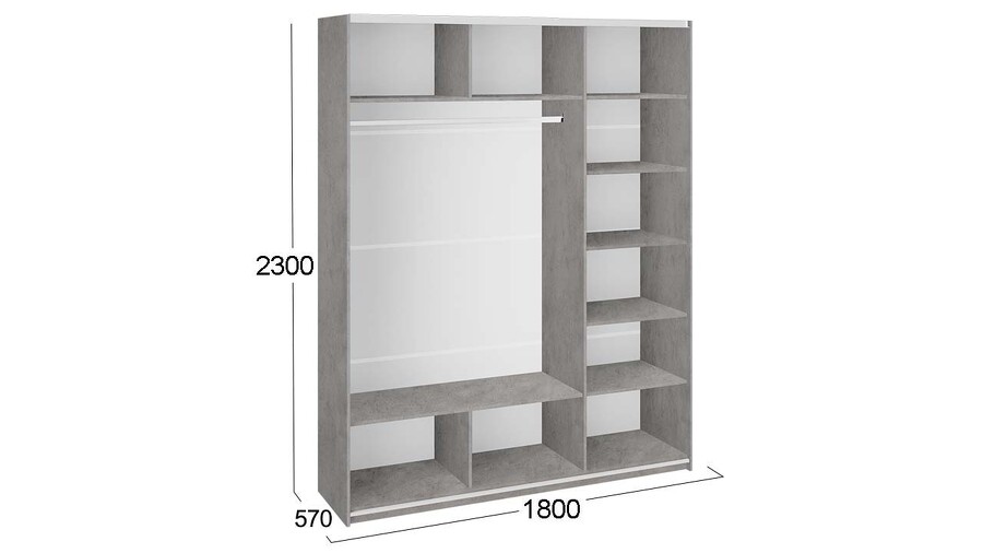Шкаф-купе 3-х дверный «Траст» - СШК 2.180.60-15.13.15 Бетон, Стекло Белый глянец, Зеркало