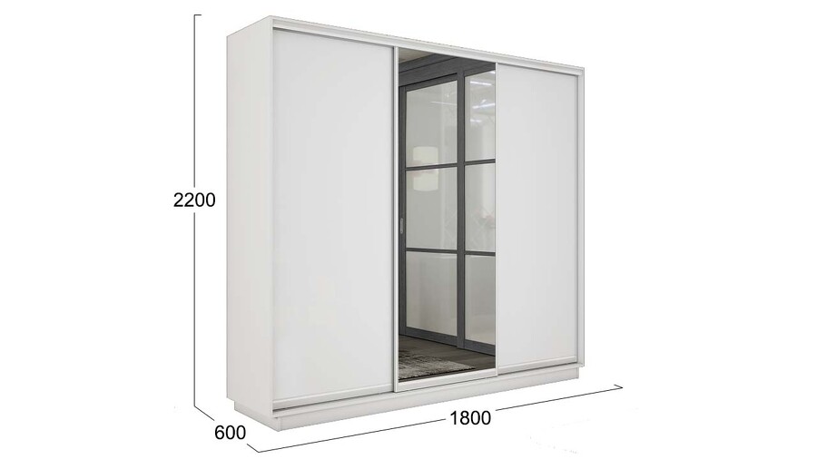 Шкаф-купе 3-х дверный «Румер-2» - СШК 3.180.60-11.13.11 Белый снег, Зеркало
