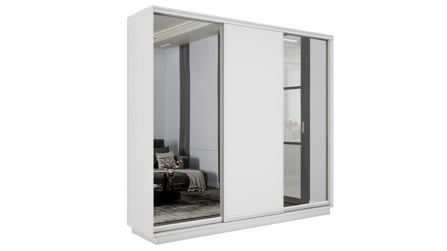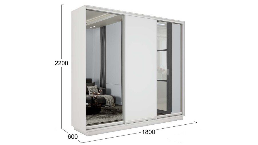 Шкаф-купе 3-х дверный «Румер-2» - СШК 3.180.60-13.11.13 Белый снег, Зеркало