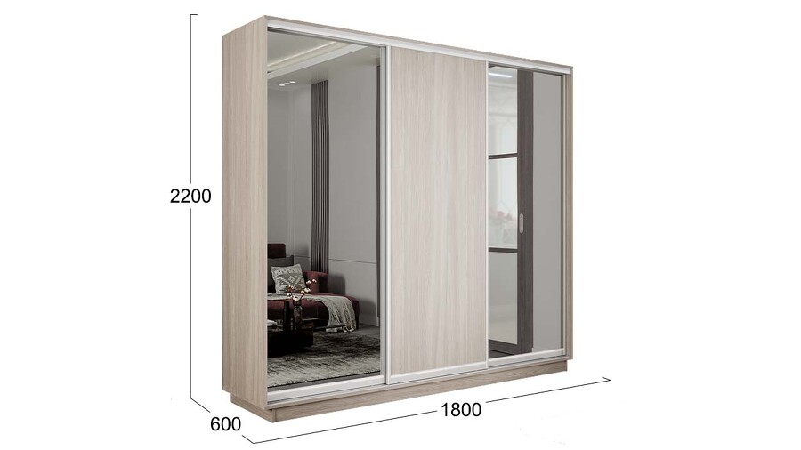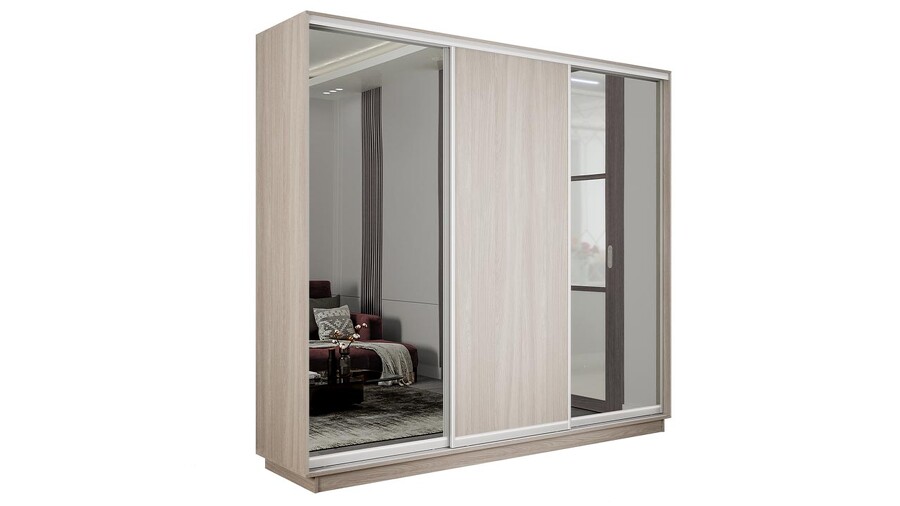 Шкаф-купе 3-х дверный «Румер-2» - СШК 3.180.60-13.11.13 Ясень шимо светлый, Зеркало