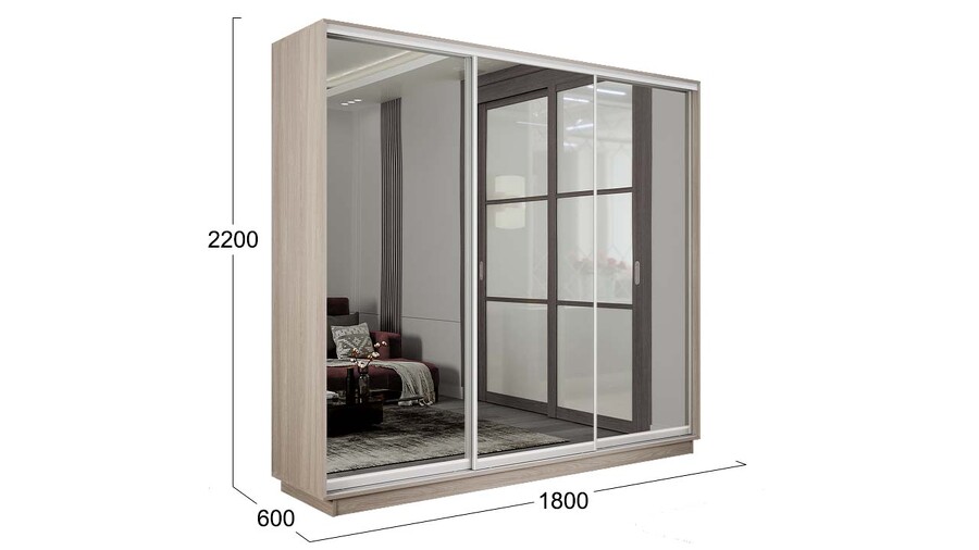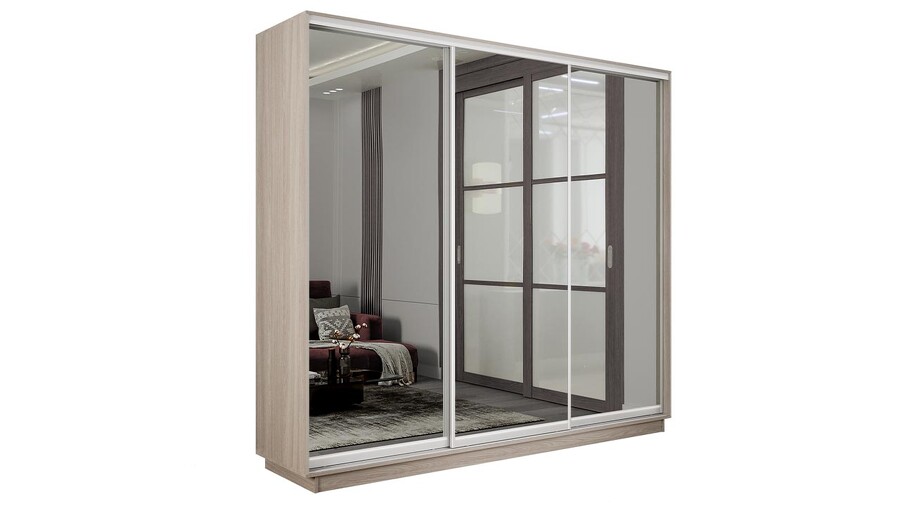 Шкаф-купе 3-х дверный «Румер-2» - СШК 3.180.60-13.13.13 Ясень шимо светлый, Зеркало